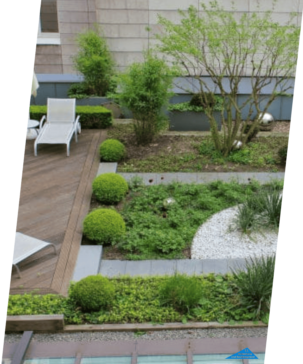 Mit dem Begriff „Intensive Dachbegrünung“ ist ein Dachgarten gemeint, der mit ebenerdigen Gärten vergleichbar ist und mit Rasenflächen, Stauden, Gehölzen oder sogar Bäumen gestaltet werden kann. Je nach Wahl der Pflanzen ist der Gesamtaufbau dieser Begrünungen unterschiedlich hoch.